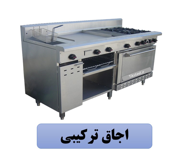 اجاق ترکیبی در ابعاد و اندازه های مختلف تولید می شود که شامل اجاق، کابینت و سرخکن سیب زمینی می باشد. جنس بدنه تمام استیل از نوع نگیر و نوع چدن مصرفی خارجی است. شرکت تیک استیل با بهره گیری از امکانات روز دنیا یکی از تولید کنندگان این محصول در ایران می باشد.